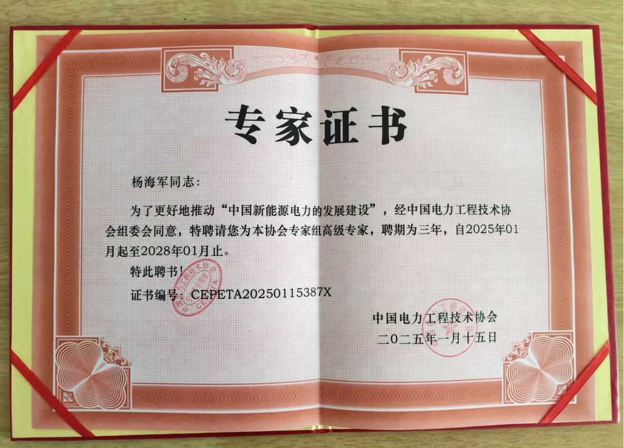 为了更好地推动“中国新能源电力的发展建设”,经中国电力工程技术协会组委会同意,特聘请您为本协会专家组高级专家,聘期为三年,自2025年01月起至2028年01月止。